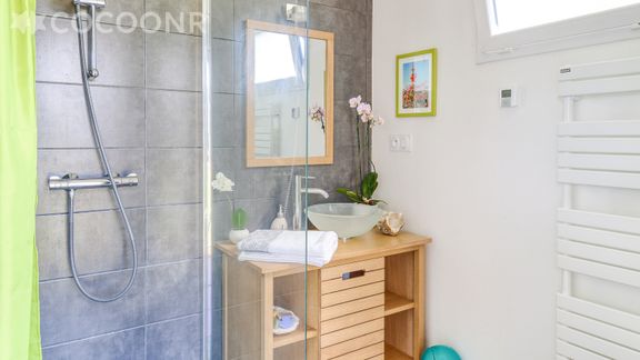 - Salle d'eau avec douche à l'Italienne, sèche-serviettes, WC