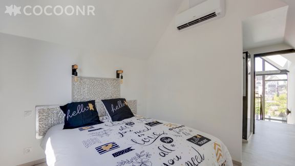L'Albatros est une maison neuve située au cœur du centre ville de Landerneau. Son impressionnante verrière vous apportera une luminosité sans égale durant votre séjour. La maison climatisée de 48m2 propose un espace extérieur avec jacuzzi. Avec sa chambre et sa mezzanine, l’Albatros peut accueillir jusqu’à 4 personnes. Sa cuisine ouverte et toute équipée vous permettra de réaliser des repas conviviaux. Plancha et salon de jardin sont à disposition.