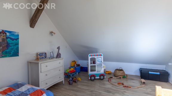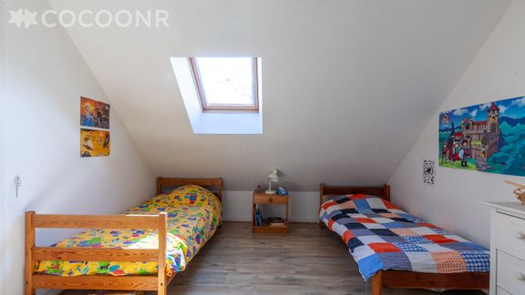 - Chambre 3 (chambre enfants) : deux lits simples et des jouets.