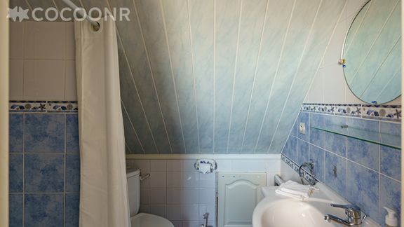 - Une salle d'eau avec douche, WC