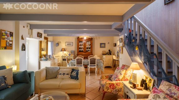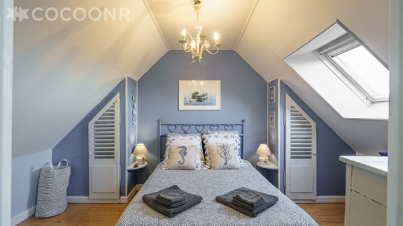 Elle est composée d'une pièce à vivre de 40 m² (avec cheminée), d'une cuisine équipée, de quatre chambres, de deux salles d'eau (avec douche) et vous pourrez profiter d'un jardin d'environ 300 m² offrant une vue sur la mer. Wifi, draps et serviettes inclus, nous n'attendons plus que vous !
