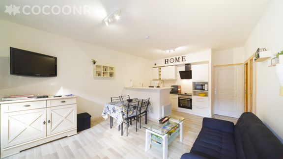- Une pièce de vie de 22 m² avec TV, canapé-lit, espace repas