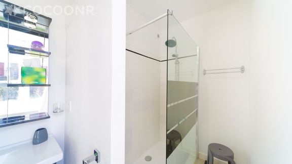 - Une salle d'eau avec douche, sèche-serviettes et WC
