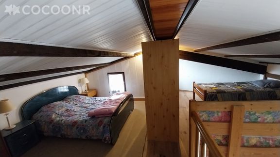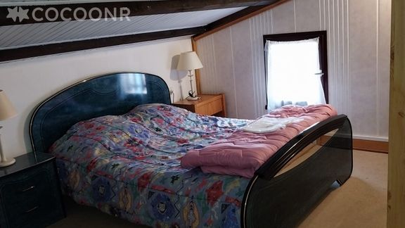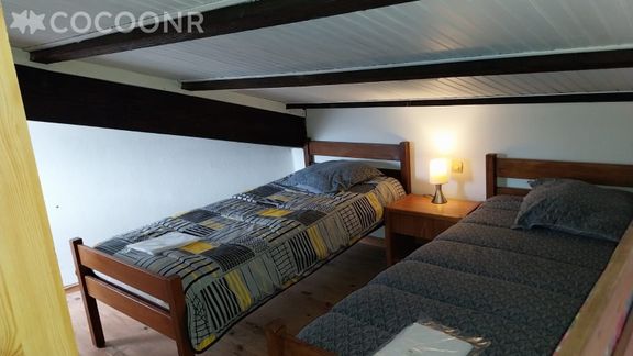 - Une chambre mansardée avec un lit double (140x190) et un espace séparé avec deux lits simples