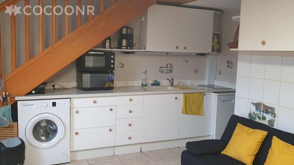 - Une kitchenette, ouverte sur le séjour, équipée avec notamment : four, four à micro-ondes, grille-pain, lave-vaisselle, plaques de cuisson, machine à café avec dosettes Senseo...