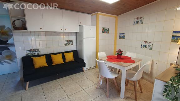 - Une pièce de vie de 15 m² avec TV, Wifi, canapé et coin repas
