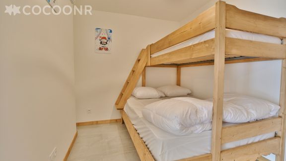 - Une chambre avec un lit superposé (1 lit simple 90x190 et un lit double 140x190). Cette chambre ne dispose pas de fenêtre
