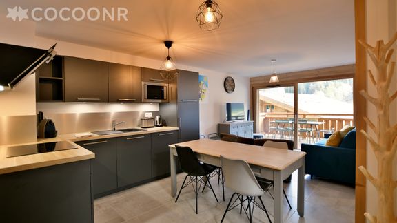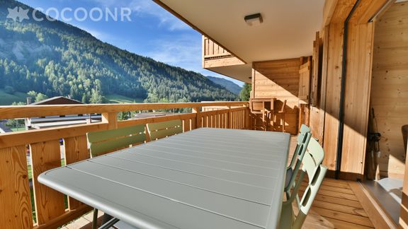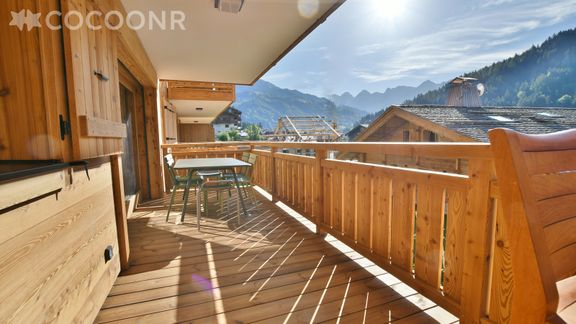 - Un balcon de 14 m², avec vue sur les montagnes des Aravis, vous permet de profiter du soleil toute la journée.