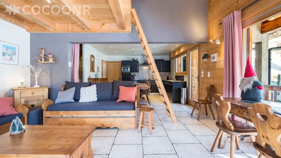 L'agence Cocoonr vous propose à la location, au Grand-Bornand, ce charmant chalet avec wifi, d’une superficie de 113 m² et pouvant accueillir jusqu’à 8 voyageurs. Il se compose d’une jolie pièce à vivre, cuisine équipée, de trois belles chambres, deux salles de bain. Le ménage est inclus dans la location et du linge de qualité hôtelière 4* vous est fourni (draps, serviettes de toilette, torchons), votre lit sera préparé à votre arrivée.