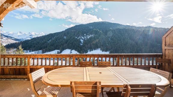 Implanté dans un quartier calme et orienté plein Sud ce chalet vous offre en plus une jolie vue panoramique sur le village, la chaine des Aravis et la Tournette.