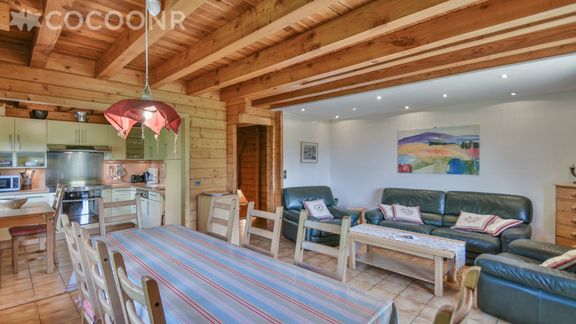 - Une grande pièce de vie avec salle à manger et salon (canapés, TV, lecteur DVD/CD, livres, jeux)