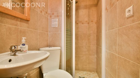 - Deux salles de bain avec une machine à laver et sèche-linge