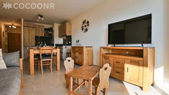 L’agence Cocoonr vous propose à la location, au Grand-Bornand, ce charmant appartement idéalement situé à proximité des pistes de ski, avec connexion Wi-Fi (fibre optique). D’une superficie de 56 m². Situé au rez-de-chaussée, il offre une agréable pièce à vivre, une cuisine entièrement équipée, le couchage pour 6 personnes et une salle d’eau moderne.