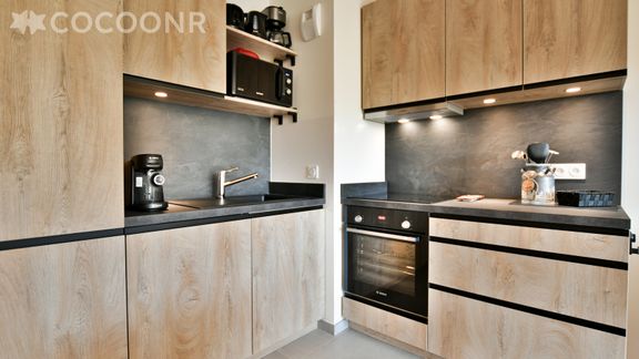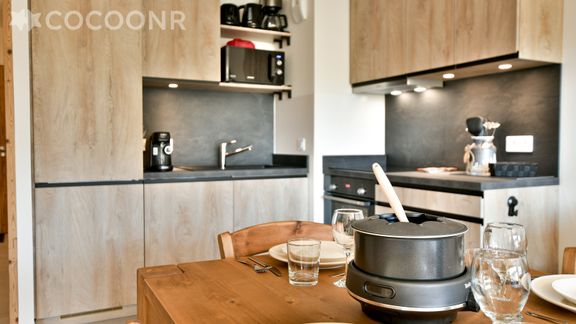 - Une cuisine équipée : bouilloire électrique, four, micro-ondes, grille-pain, lave-vaisselle, plaques de cuisson…