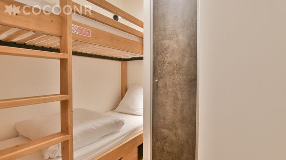 - Cabine 1 : lit superposé (2 couchages). Sans fenêtre, séparation du couloir avec un rideau.