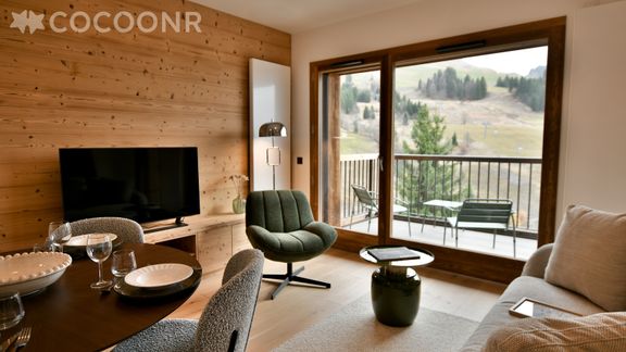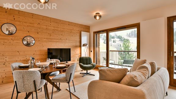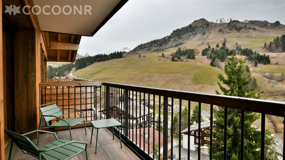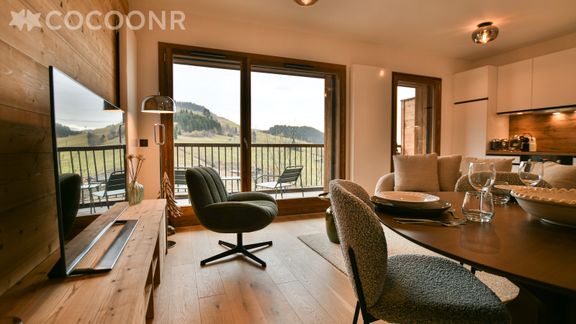 - Un balcon pour profiter des beaux jours avec une jolie vue sur le mont Lachat et les pistes de ski.