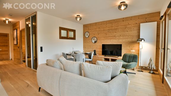 L'Agence Cocoonr vous propose, au Grand-Bornand, ce charmant appartement avec vue montagne, d’une superficie de 50 m² et pouvant accueillir jusqu’à 2 voyageurs. Situé au -1e étage (avec ascenseur), il se compose d’une jolie pièce à vivre de 21 m², cuisine équipée, d’une belle chambre, une salle de bain (avec douche). Le ménage est inclus dans la location et du linge de qualité hôtelière 4* vous est fourni (draps, serviettes de toilette, torchons), votre lit sera préparé à votre arrivée.