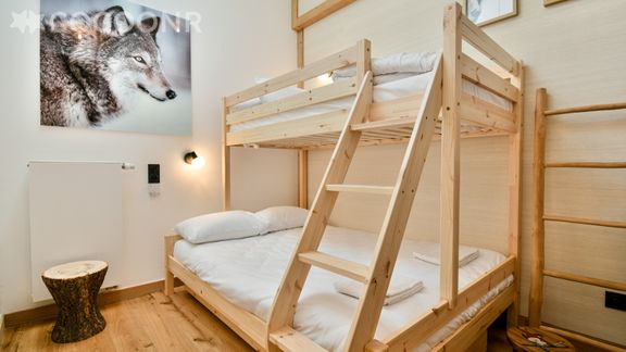 - Une chambre avec un lit double (140x200) et un lit superposé (90x200)