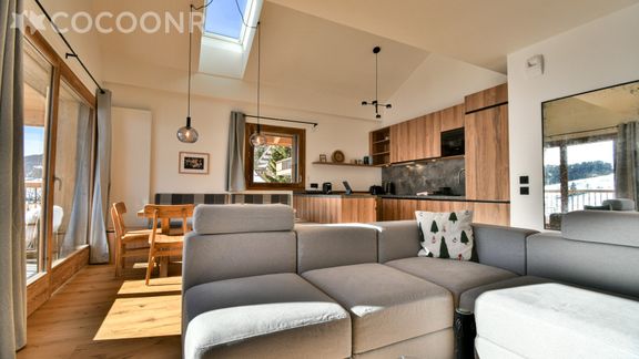 L'agence Cocoonr vous propose à la location, au Chinaillon, station village du Grand Bornand, ce charmant appartement avec wifi, d’une superficie de 78 m² et pouvant accueillir jusqu’à 7 voyageurs. Il se compose d’une jolie pièce à vivre, cuisine équipée, de trois belles chambres, deux salles de bain. Le ménage est inclus dans la location et du linge de qualité hôtelière 4* vous est fourni (draps, serviettes de toilette, torchons), votre lit sera préparé à votre arrivée.