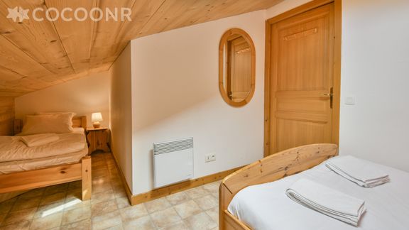 - Chambre 1 : Un lit double (140x190) et deux lits simples (90x190)