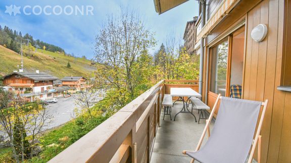 - Un balcon exposé plein sud et face aux pistes de ski, qui est pourvue de table et chaises de jardin