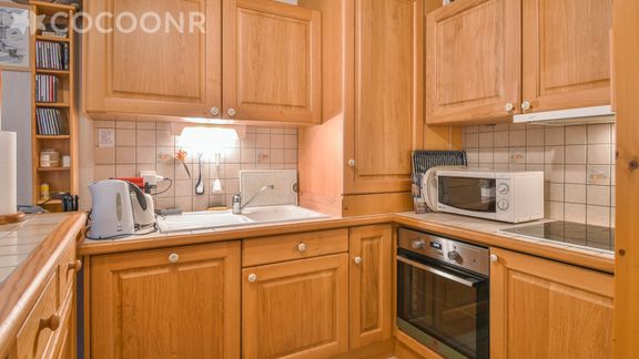 - Une cuisine entièrement équipée avec plaque vitrocéramique, hotte, four, frigo, lave-vaisselle, un grille-pain, une cafetière et un appareil à raclette