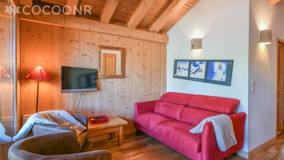 - Une pièce de vie de 20 m² avec TV écran plat et d'un confortable canapé orienté vers l'extérieur.