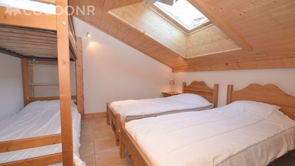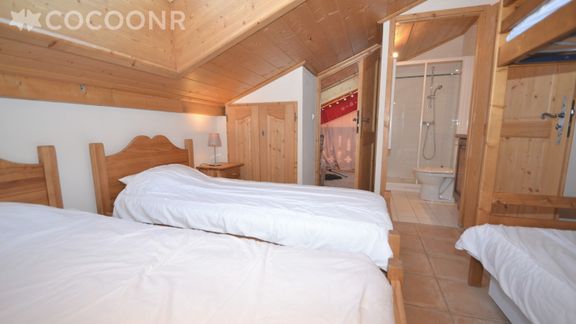 - Chambre 3 : Un lit superposé (2 couchages) + deux lits simples avec une salle de bain et WC