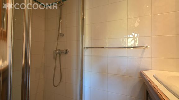 - Une salle de bain (douche) avec lave-linge et sèche-linge