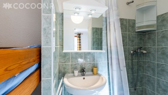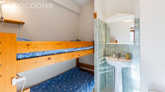 - Un coin nuit : un lit superposé (2 couchages), une douche et un lavabo