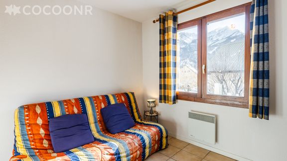 À proximité du séjour, une pièce avec une TV et un clic-clac (2 couchages)