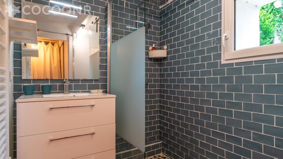 - Une salle d'eau avec douche à l'italienne et fenêtre oscillo-battante