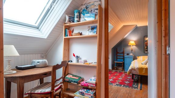 - Chambre 2 : deux lits simples (90×190) avec table de chevet, radio réveil, penderie et étagères