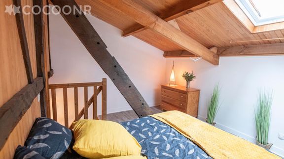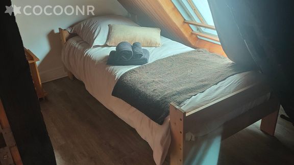 🙁 Aucune vue (uniquement des velux), logement vétuste, non isolé (chambres sous les toits), bricolé, pas de stores aux velux (de simples bouts de tissus trop courts et crasseux rendant impossible de faire le noir), propreté très limite (poussière partout, cheveux, frigidaire sale...). Literie et linge de lit de mauvaise qualité. Chambres minuscules, sous pente, celle au lit 1 place ne permettant même pas de se retourner dans le lit ni de tenir debout. Salle de bain minimaliste et minuscule, rideau de douche sale, pas de lumière digne de ce nom (de petits spots bricolés sur les poutres), pas de lumière dans la chambre principale. Aucun contact avec le gestionnaire, ni à l'arrivée ni au départ, même par mail. Rapport qualité prix improbable !