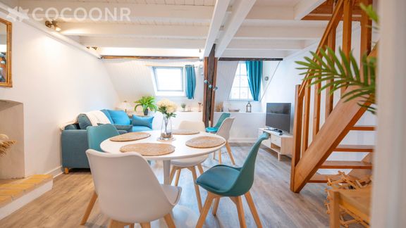 Nous vous proposons à la location, sur la commune de Le Palais à Belle-Ile en mer, ce charmant duplex à moins d’un kilomètre de la plage, d’une superficie de 47 m² et pouvant accueillir jusqu’à 3 voyageurs. Situé au 2e étage (sans ascenseur), il se compose d’une jolie pièce à vivre de 20 m², d'une cuisine équipée, de deux chambres et d'une salle de bain. Wifi, draps et serviettes inclus, nous n’attendons plus que vous !