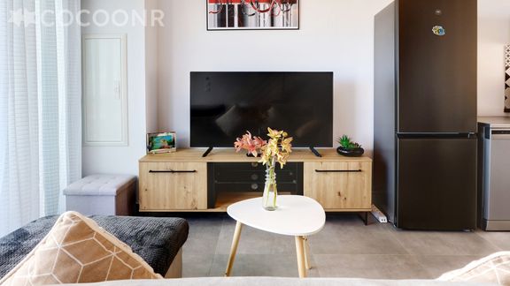 - Une pièce de vie de 25 m² avec TV (50") et canapé-lit double