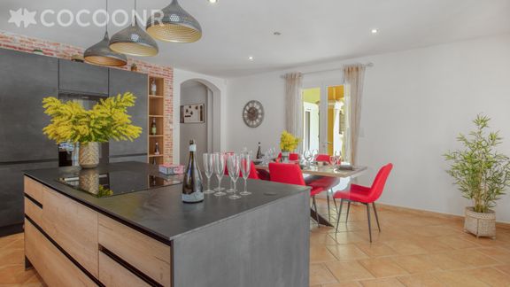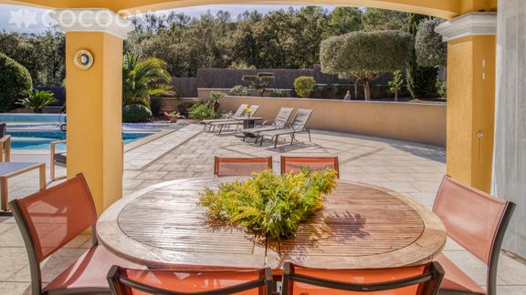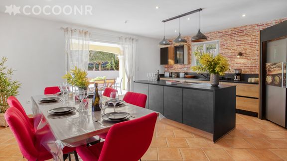 L'agence Cocoonr/B&P vous propose à la location, sur la commune de Le Thoronet, cette charmante villa climatisée avec piscine privée, d’une superficie de 135 m² et pouvant accueillir jusqu’à 8 voyageurs. Elle est composée d’une jolie pièce à vivre de 20 m², d'une cuisine équipée, de trois belles chambres, deux salles de bain (avec douche) et vous pourrez profiter d’un jardin d’environ 1 050 m². Wifi, draps et serviettes inclus, nous n’attendons plus que vous !