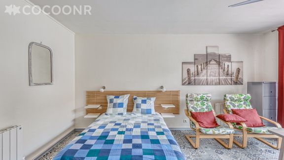 - Un espace chambre avec un lit double.