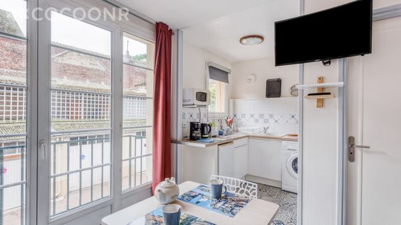 Le logement est situé dans l'hypercentre de Tréport, à deux pas du port et de la plage dans une petite rue commerçante avec toutes commodités : boulangerie, boucherie, boutique, supérette, restaurants, bars...