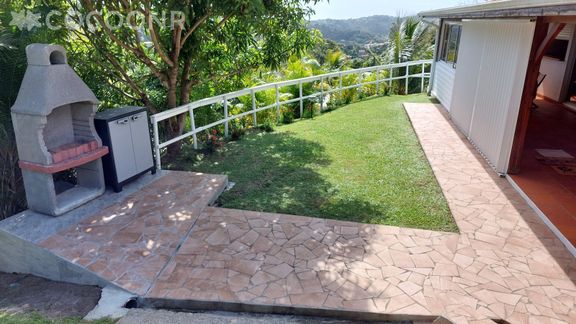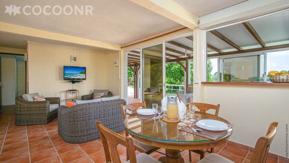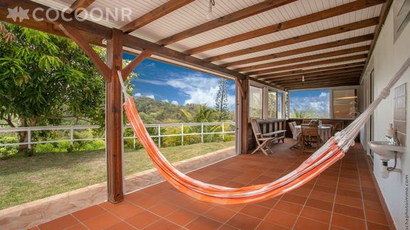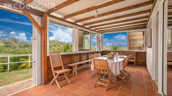 - Une terrasse de 39 m², face au lever su soleil le matin, avec mobilier et une belle vue sur le jardin et le morne.