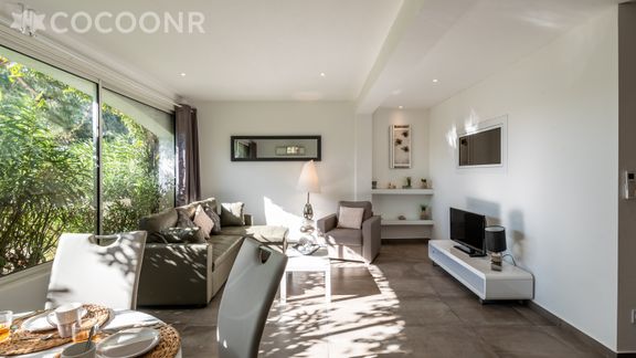 Au cœur du prestigieux domaine privé de Cala Rossa, vous disposerez ainsi d'une belle pièce de vie lumineuse avec un coin salon et un espace repas, une cuisine entièrement équipée ainsi que deux chambres chacune dotée de sa propre salle d'eau !