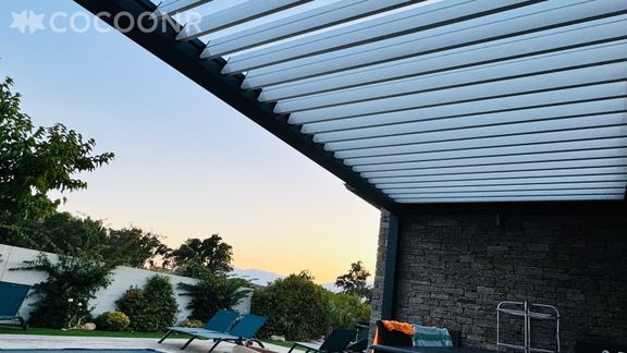 - Une terrasse de 40 m², exposée Sud avec mobilier et couverte entièrement par une pergola bioclimatique pour profiter des beaux jours.