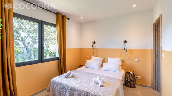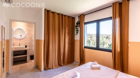 - Chambre 2 : un lit queen-size (160×200) et une salle d'eau attenante.