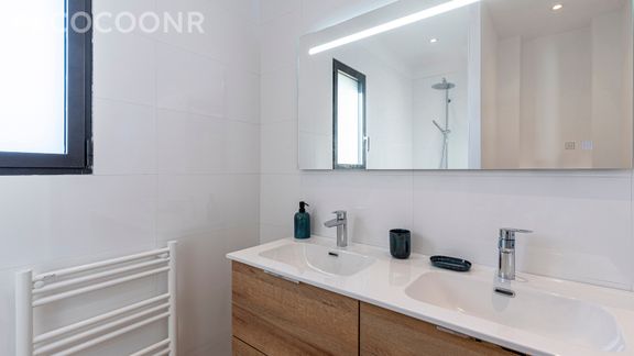 - Une salle de douche commune (deux vasques) avec WC