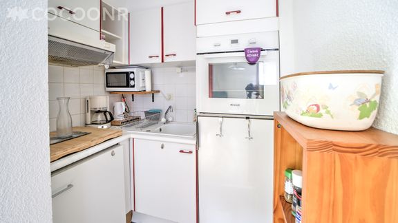 - Une pièce de vie avec TV, canapé, coin repas et une cuisine équipée avec notamment : bouilloire électrique, four, four à micro-ondes, grille-pain, plaques de cuisson...