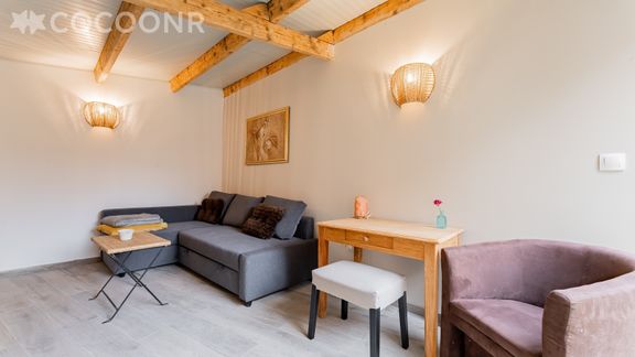 - Une pièce de vie de 30 m² avec TV, canapé lit double...