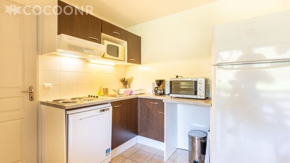 - une cuisine équipée avec notamment : bouilloire électrique, four, four à micro-ondes, grille-pain, lave-vaisselle, plaques de cuisson...