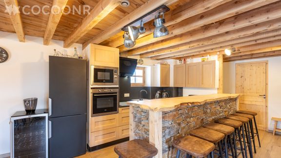 - Une cuisine équipée avec notamment : bouilloire électrique, four, four à micro-ondes, grille-pain, lave-vaisselle, plaques de cuisson...