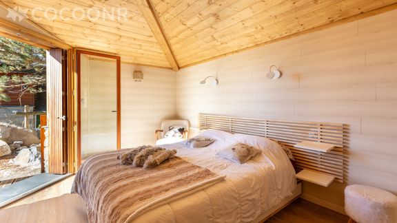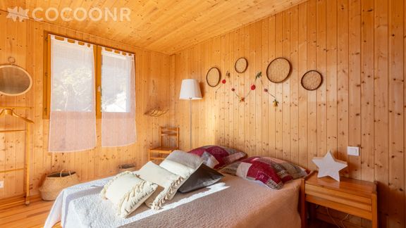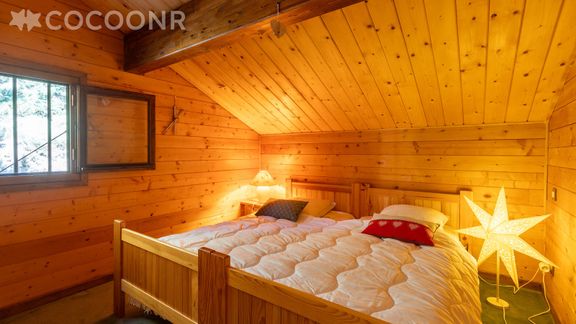 - Chambre 1 : un lit double (140×190) avec vue sur la montagne et le lac