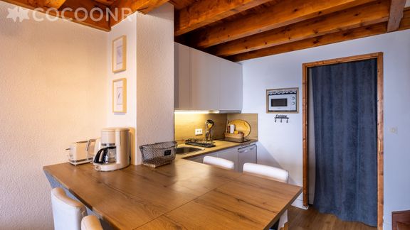 La station est super. Tout le confort dans le logement. 2 petites améliorations cependant la pression de la douche très faible et l'aspirateur qui n'est pas puissant du tout mais ça n'a pas gâché notre séjour. La localisation est top on peut rejoindre une piste à pieds en 3mn ou la navette juste en face. On a adoré. La vue est parfaite et le petit poêle à bois est un vrai plus.